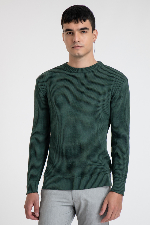 Descrição do produto - A malha Filippo Preta, é confeccionado em tricot. Possui padronagem com textura, caimento reto, decote redondo, mangas longas, barra larga canelada e aplicação da plaquinha de metal na altura da barra.